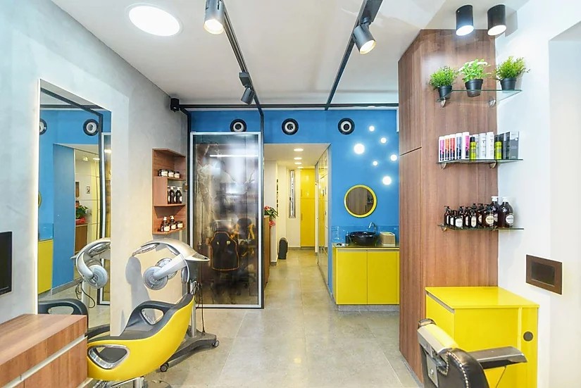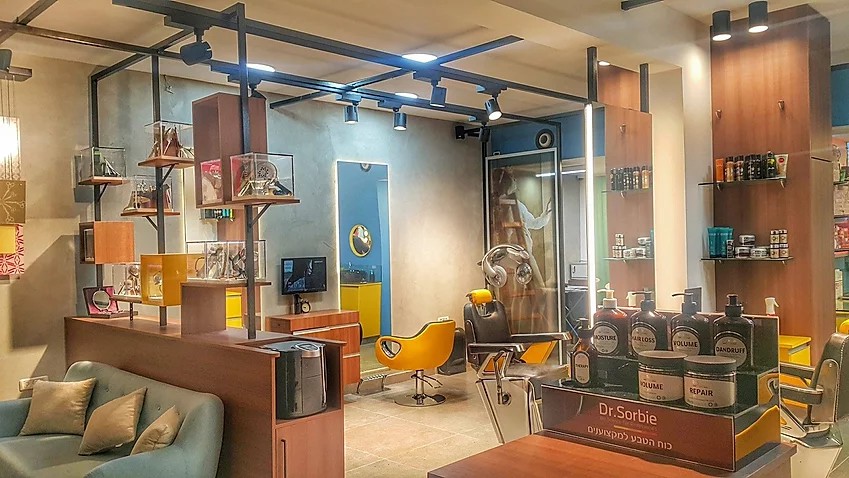 מספרה בעיצוב מיוחד בסגנון רטרו מודרני.