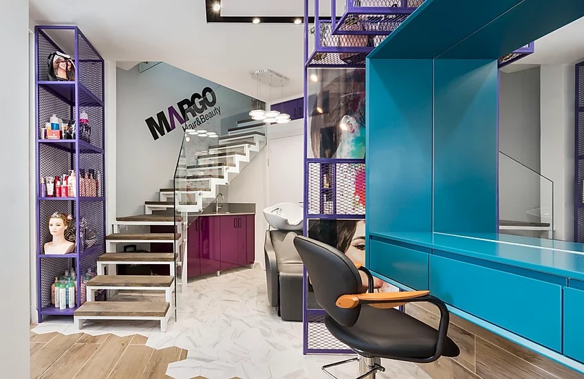 סלון היופי דו קומתי, עוצב בסגנון מודרני.